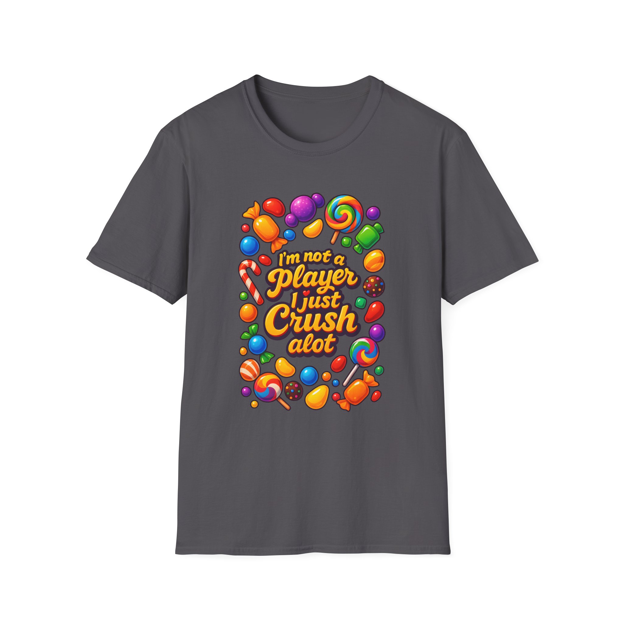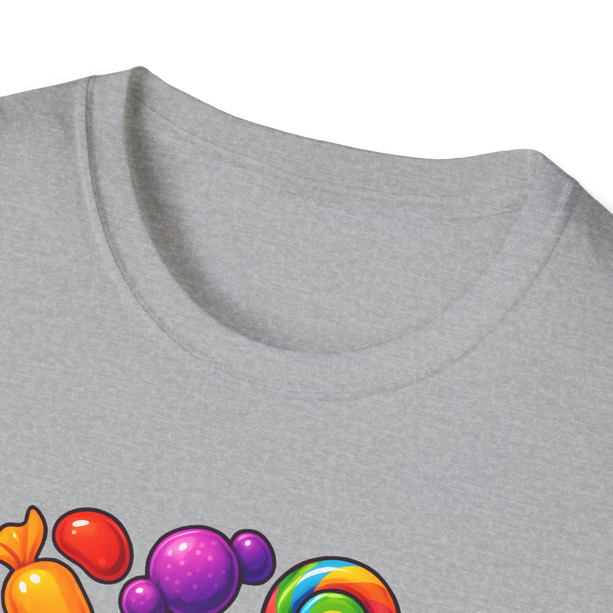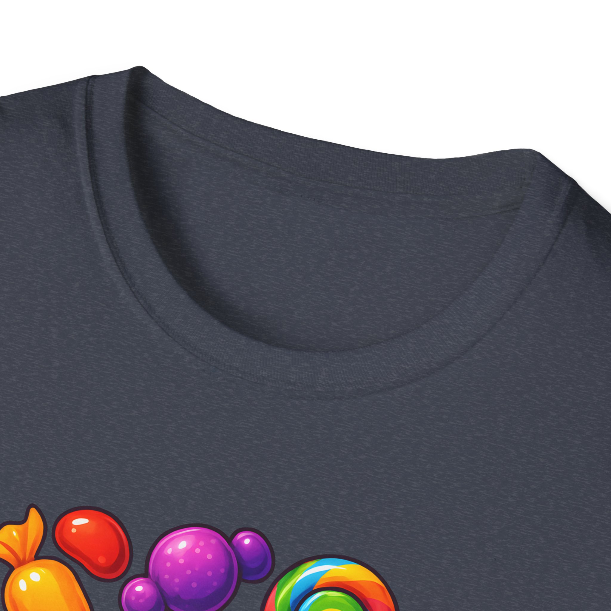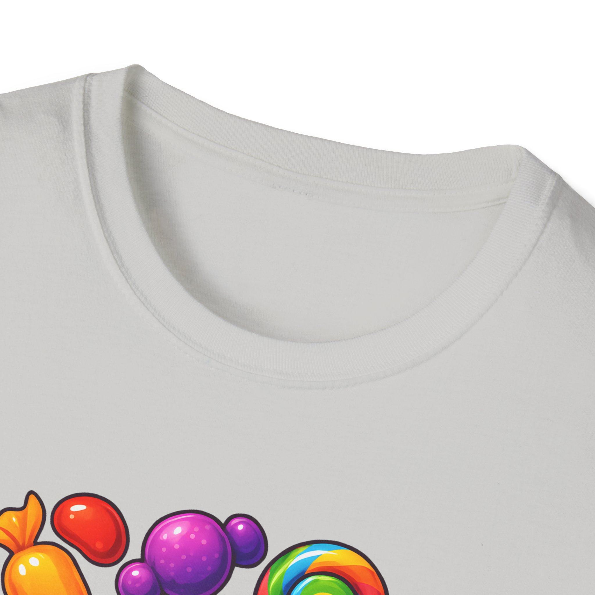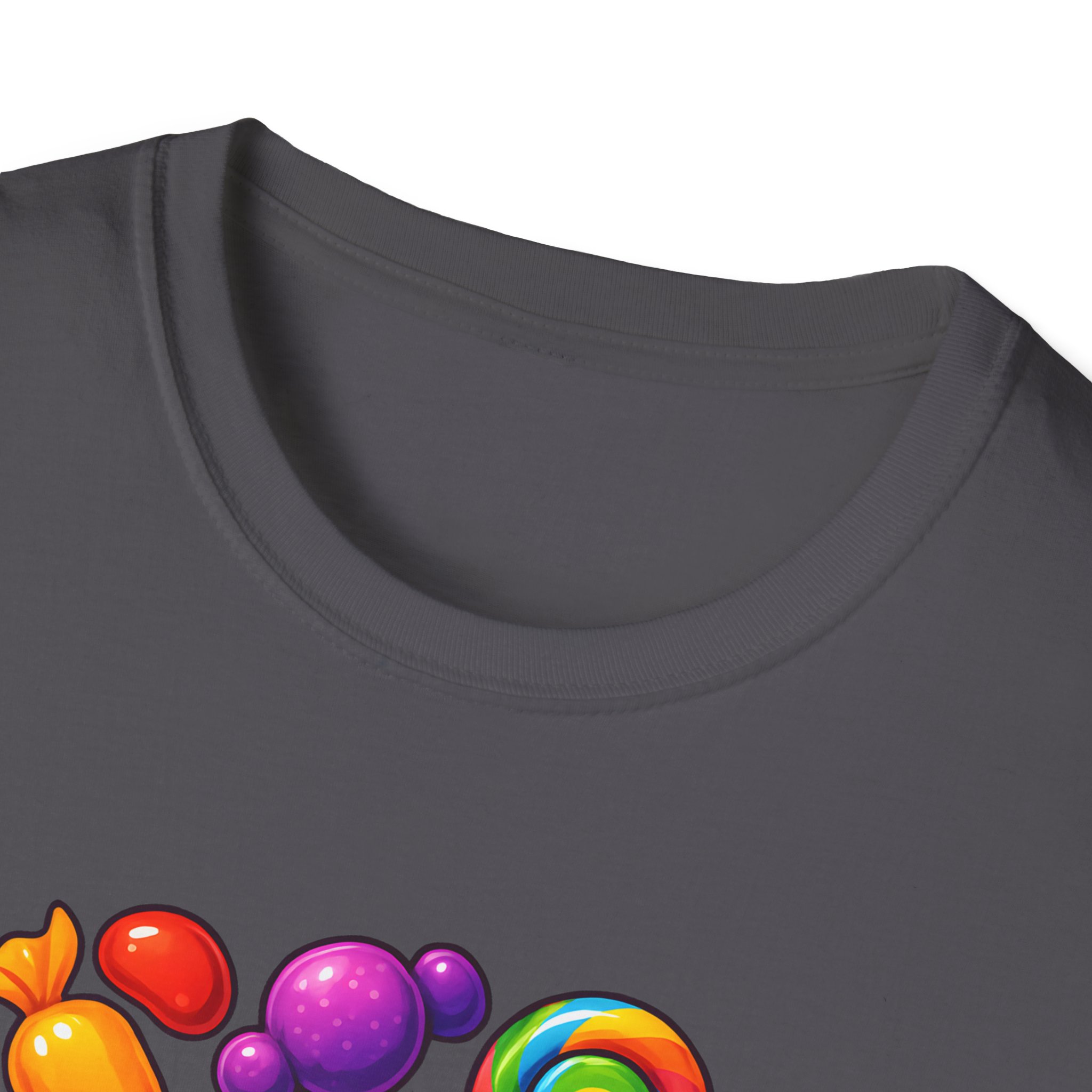 Bright, playful, and built for everyday wear — this lightweight crew tee carries a candy-coated message that’s equal parts cheeky and sweet. The bold, colorful print sits centered on a smooth, ring-spun cotton fabric that feels soft against the skin. It settles into a classic fit with a comfortable neckline and tear-away label, so you can wear it all day without fuss. Wear it when you want to bring a little fun to a casual hangout, a game night, or when you’re out chasing nostalgia at an arcade or candy shop. The print pops under natural light and the shirt’s sturdy construction holds shape wash after wash — a lively wardrobe staple for anyone who likes humor served with a side of color.