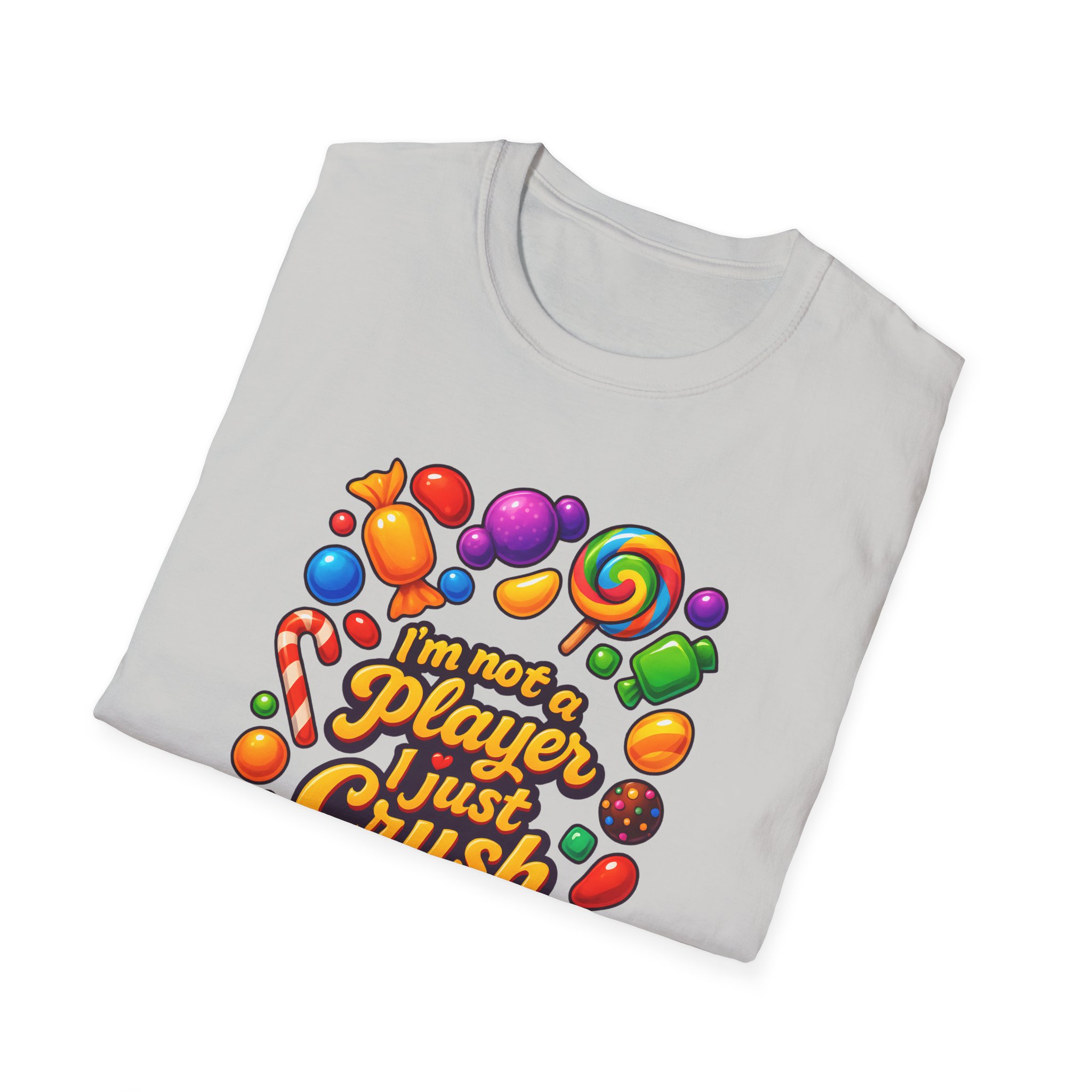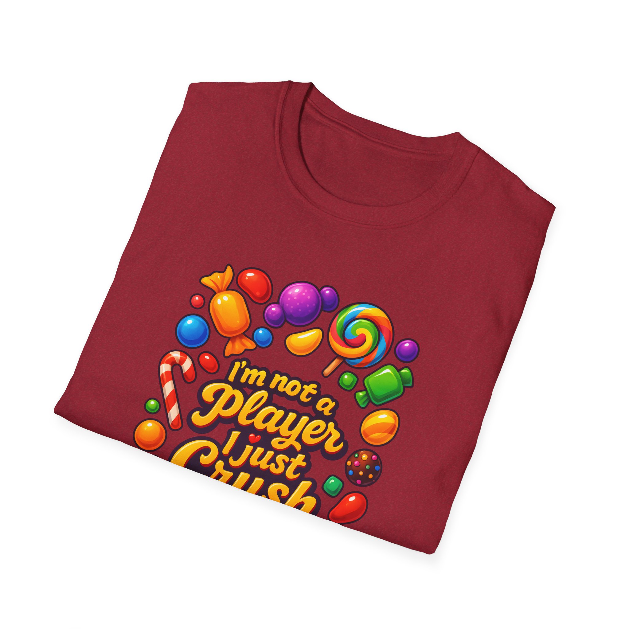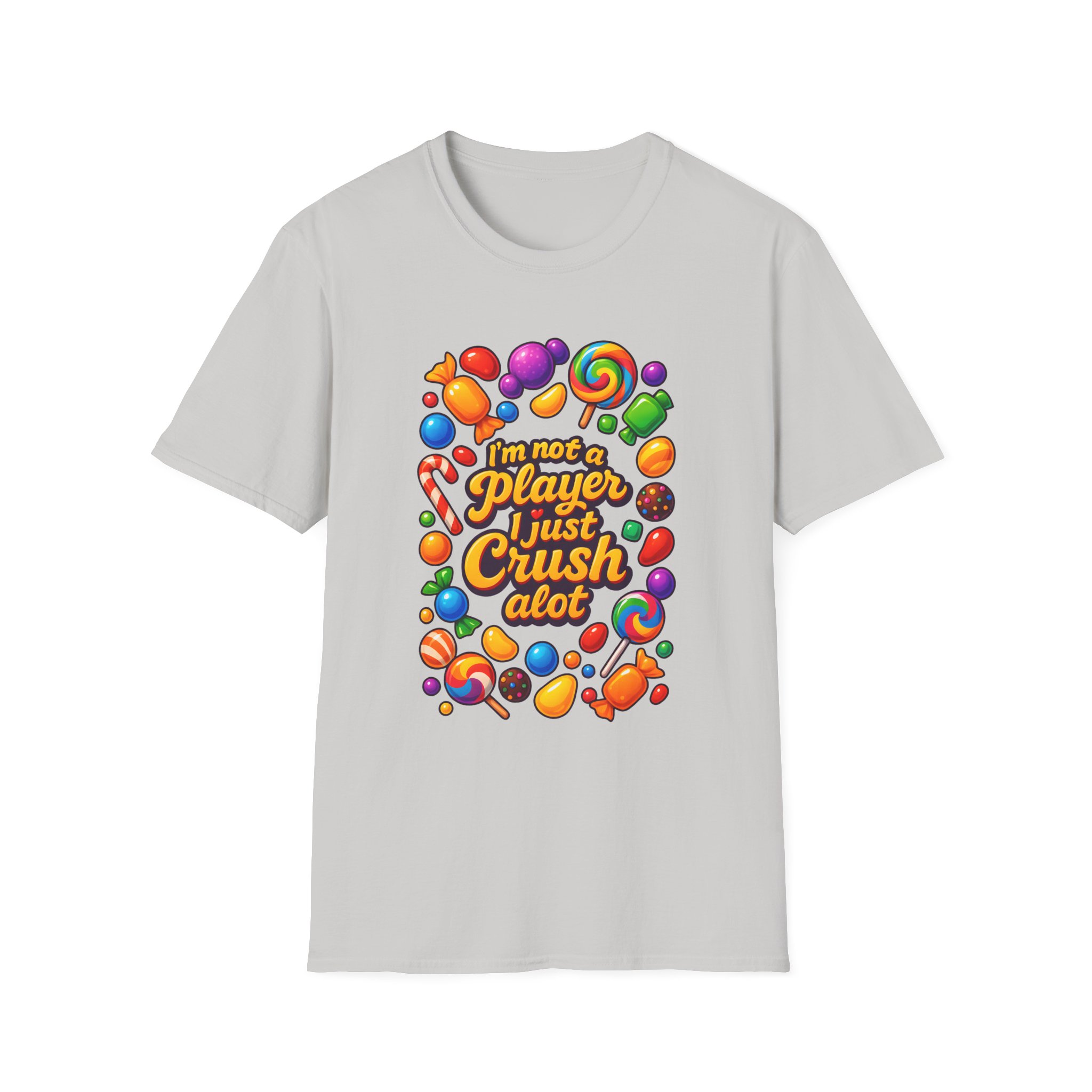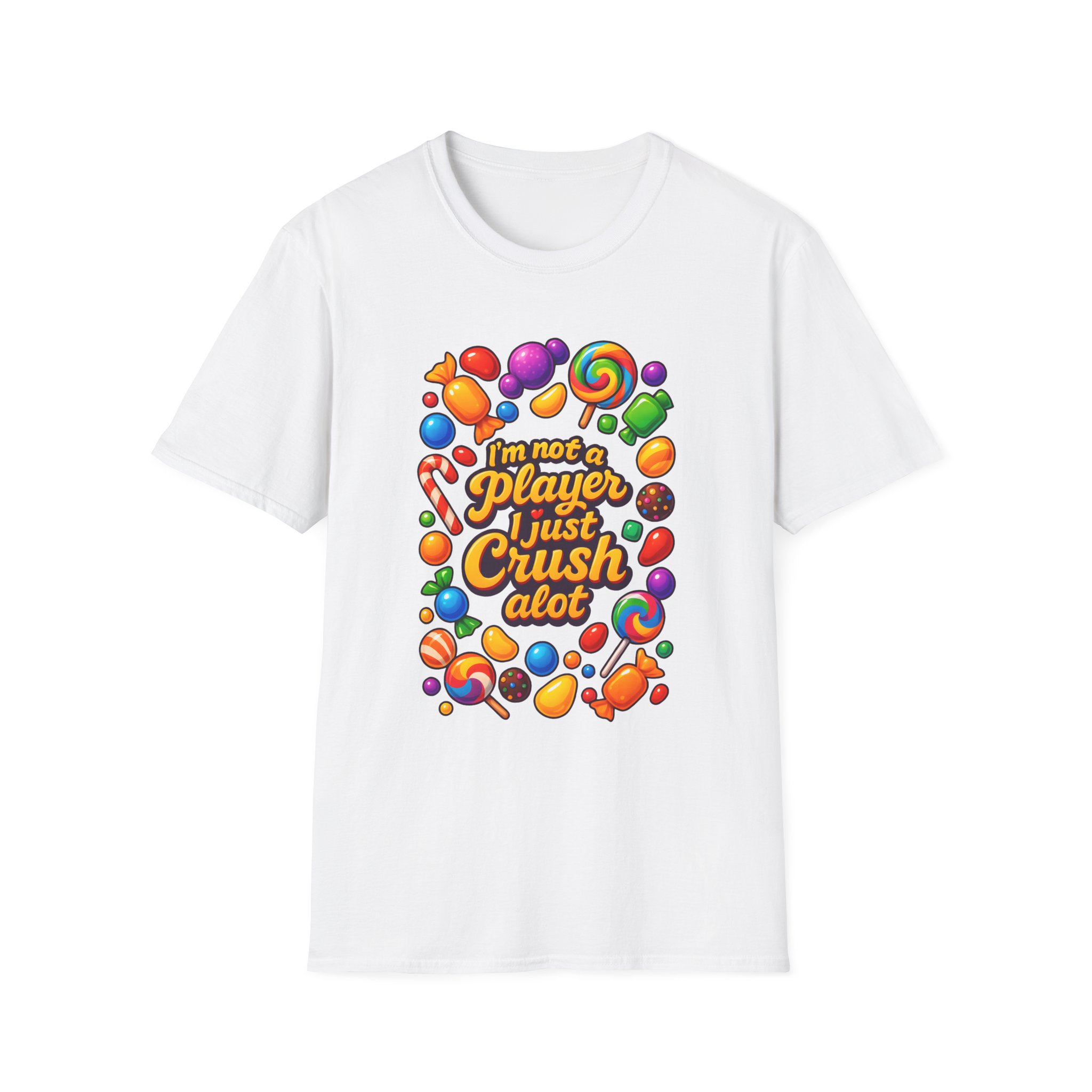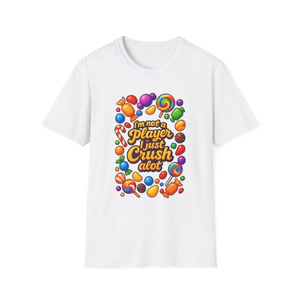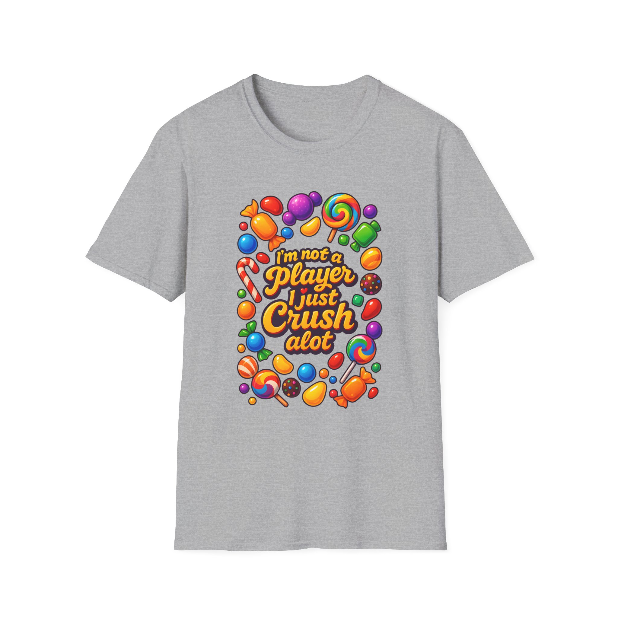 Bright, playful, and built for everyday wear — this lightweight crew tee carries a candy-coated message that’s equal parts cheeky and sweet. The bold, colorful print sits centered on a smooth, ring-spun cotton fabric that feels soft against the skin. It settles into a classic fit with a comfortable neckline and tear-away label, so you can wear it all day without fuss. Wear it when you want to bring a little fun to a casual hangout, a game night, or when you’re out chasing nostalgia at an arcade or candy shop. The print pops under natural light and the shirt’s sturdy construction holds shape wash after wash — a lively wardrobe staple for anyone who likes humor served with a side of color.