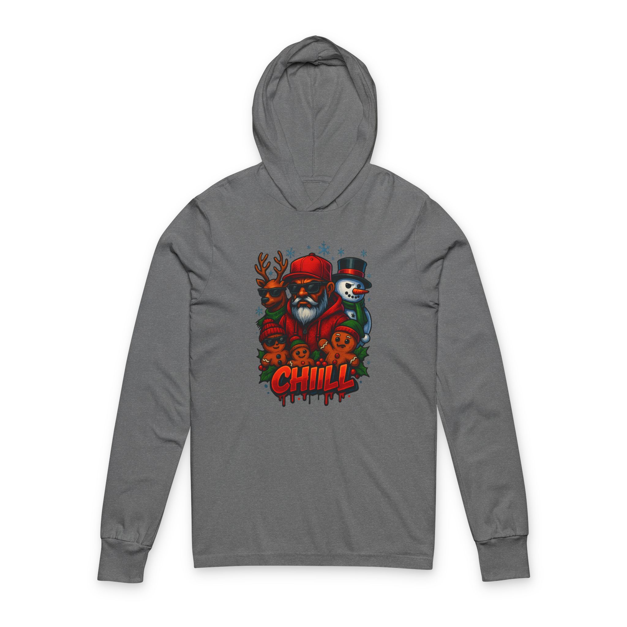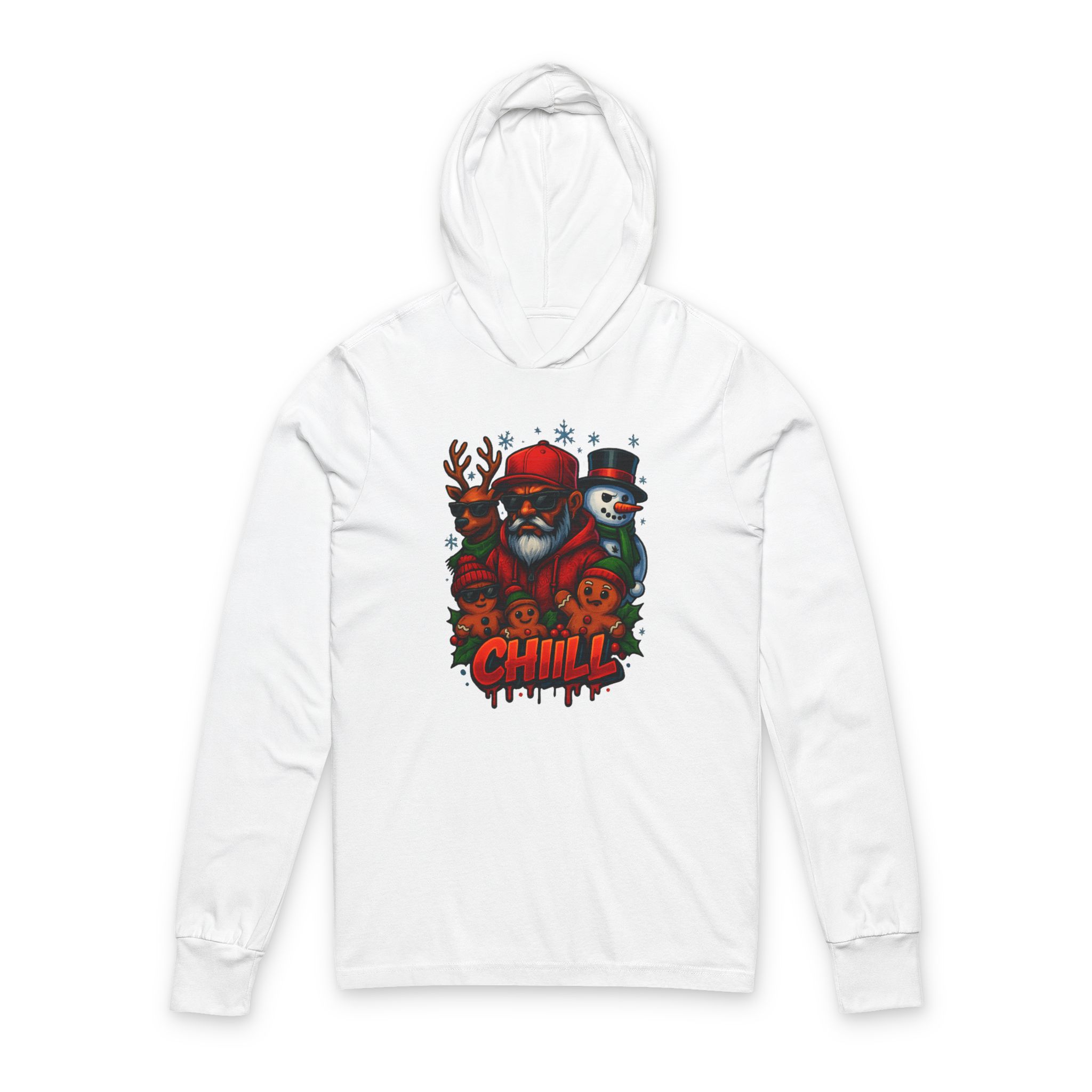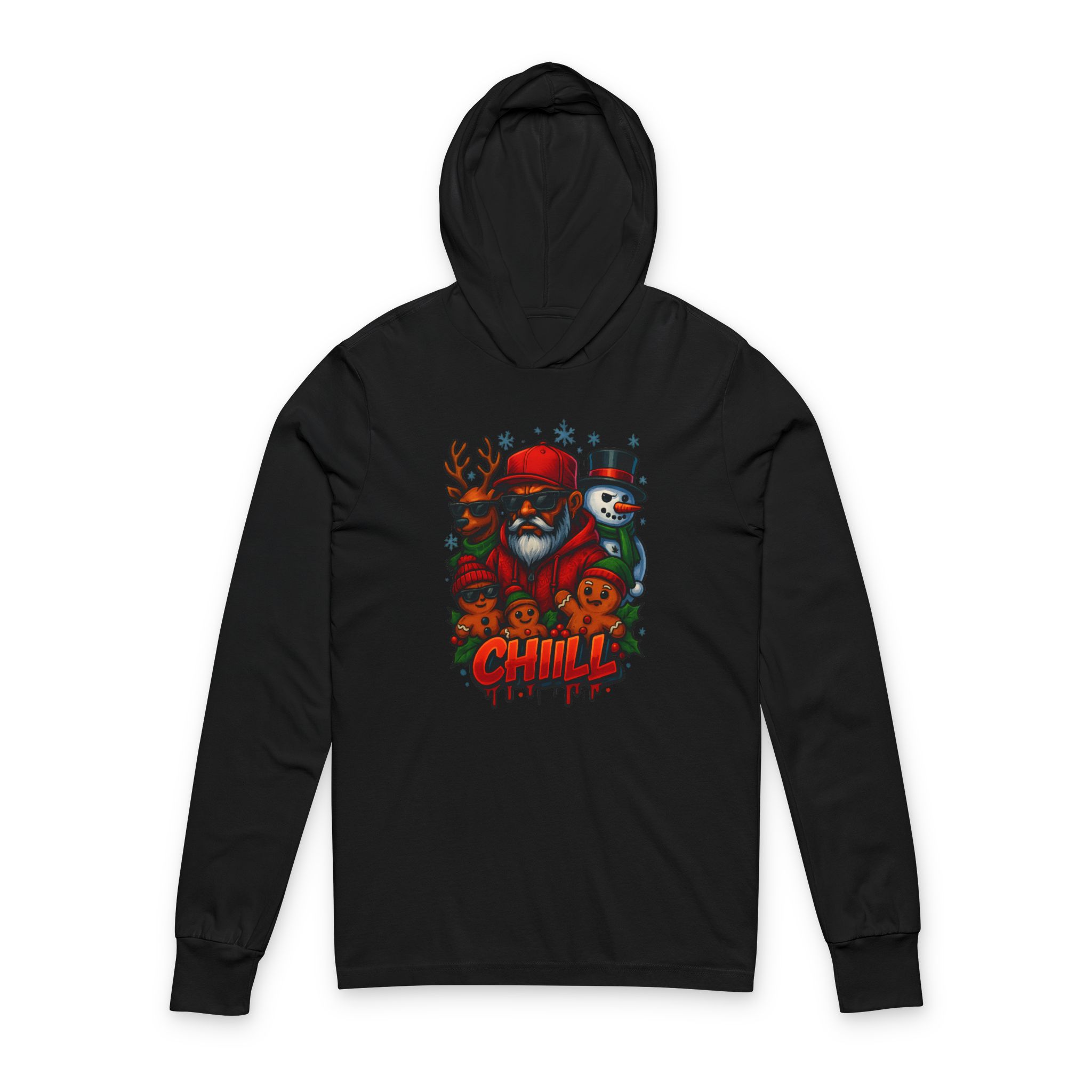 Christmas Chill Hoodie Tee – Santa Skull Reindeer Graphic Long Sleeve